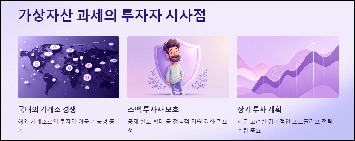 가상자산 과세는 투자 환경과 투자자 심리에 여러 변화를 초래할 수 있습니다. 주요 시사점은 다음과 같습니다.
