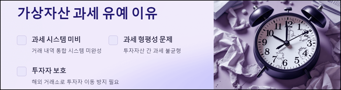 정부가 가상자산 과세를 유예한 이유는 다음과 같습니다.