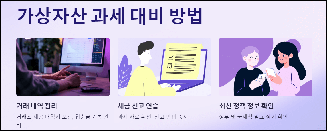 가상자산 과세는 아직 유예되었지만, 투자자들은 장기적으로 준비해야 합니다. 아래와 같은 실질적인 대비책을 통해 향후 과세 시행에 대비할 수 있습니다.
