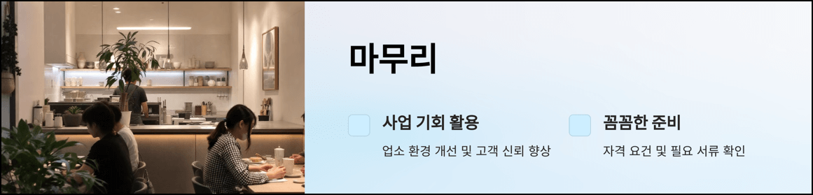 - 업소 내 시설 개선(인테리어, 주방 시설 등)