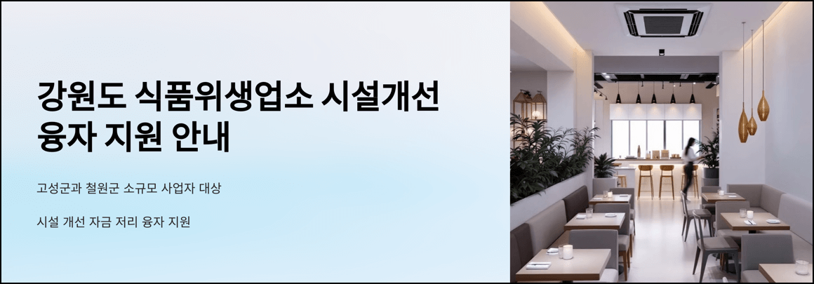 강원도 고성군과 철원군에서 지역 내 식품위생업소를 대상으로 시설개선을 위한 융자 지원 사업을 진행하고 있습니다. 해당 사업은 소규모 사업자들에게 시설 개선 자금을 저리로 지원하여 업소 운영 환경을 개선할 수 있도록 돕는 것을 목표로 하고 있습니다.