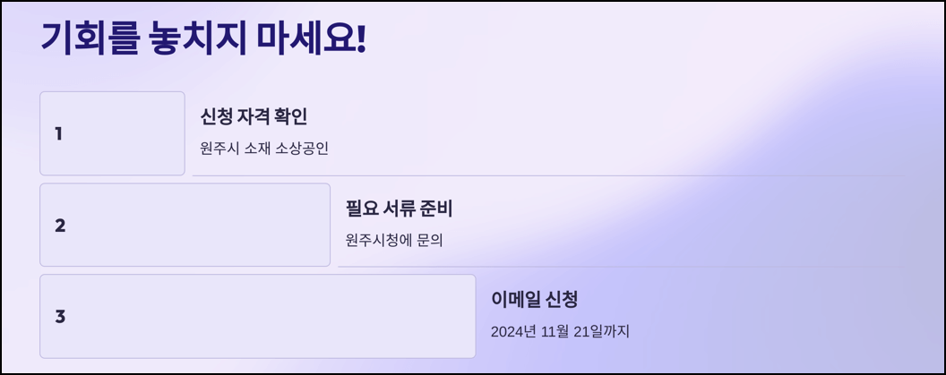 - 문의처: 원주시청 경제진흥과 (☎ 033-737-2939)
