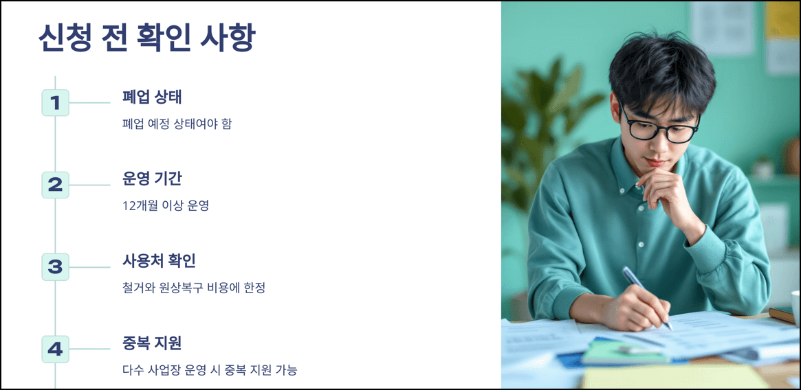 - 지원 대상은 폐업 예정 상태여야 하며, 이미 폐업한 사업체는 지원 대상에서 제외됨.