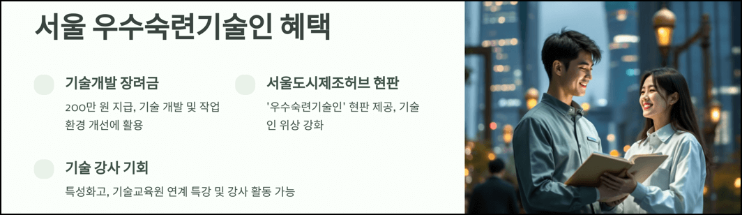 서울시에서 숙련된 기술인들을 위해 특별한 지원 제도를 마련했습니다. 바로 ‘우수숙련기술인 선정’인데요, 선정된 기술인에게는 200만 원의 기술개발 장려금과 함께 다양한 혜택이 제공됩니다. 특히, 기술인으로서 새로운 도약을 꿈꾸는 분들에게 좋은 기회가 될 수 있는데요. 지금부터 자세히 알아보겠습니다.