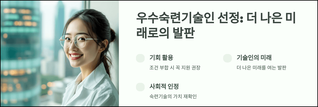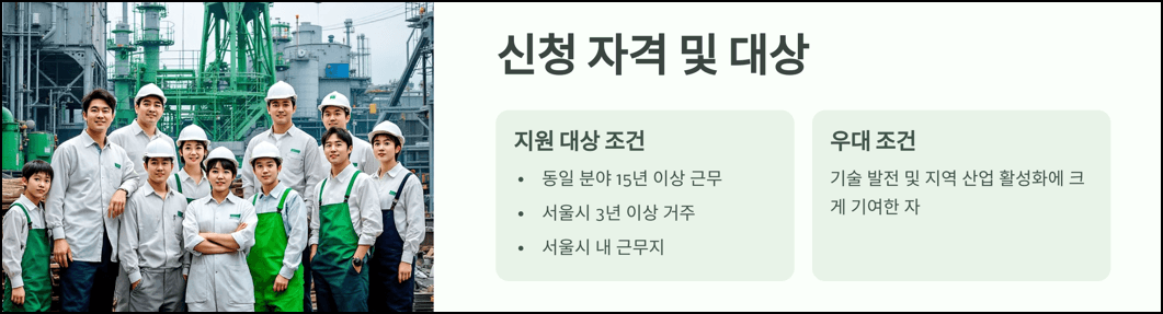 모든 숙련 기술인이 신청할 수 있는 것은 아닙니다. 일정한 자격 요건이 충족되어야 하는데요, 아래의 조건을 꼼꼼히 확인해 보세요.