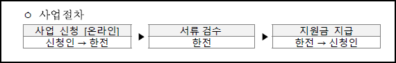 - 서류 검토 완료 후 한전이 신청자에게 지원금을 지급