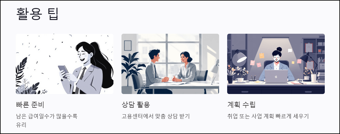 조기취업수당은 실업 상태에서 빠르게 재취업하거나 사업을 시작하려는 분들에게 큰 도움을 줄 수 있습니다. 아래 팁을 참고해 혜택을 최대한 활용해 보세요.