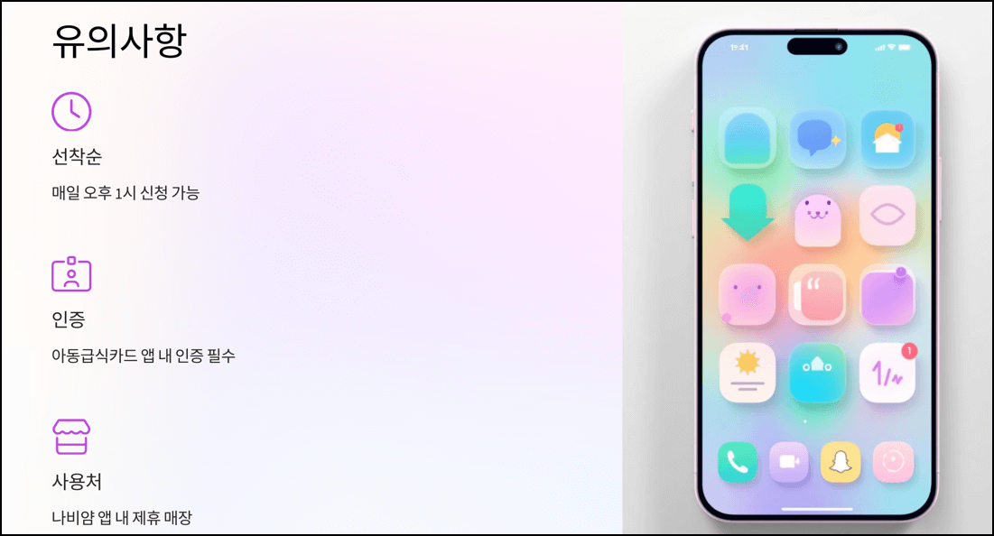 - 아동급식카드 인증: 앱 내에서 아동급식카드 인증을 완료합니다.
