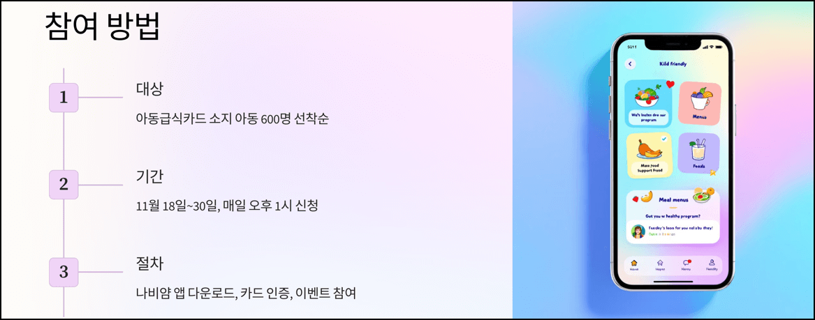 아동급식카드 식사지원 캠페인에 대해 더 궁금한 사항이 있다면, 아래 링크를 통해 신청 안내를 받으실 수 있습니다.