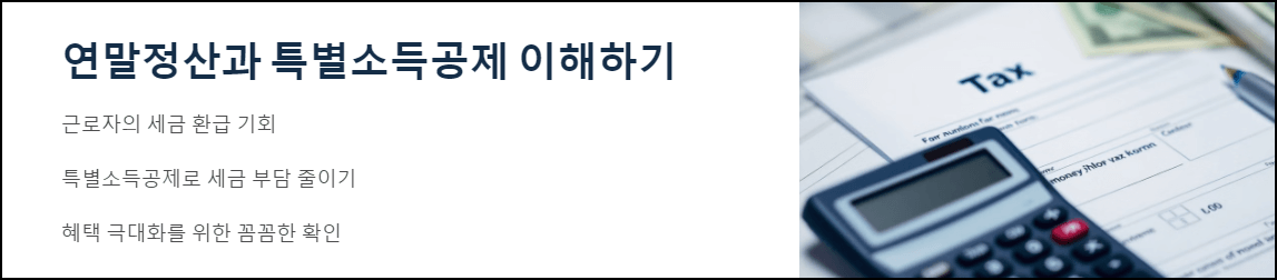 연말정산은 근로자들에게 매년 돌아오는 중요한 세금 환급 기회입니다. 특히, 특별소득공제는 이를 통해 세금 부담을 줄일 수 있는 중요한 항목 중 하나입니다.