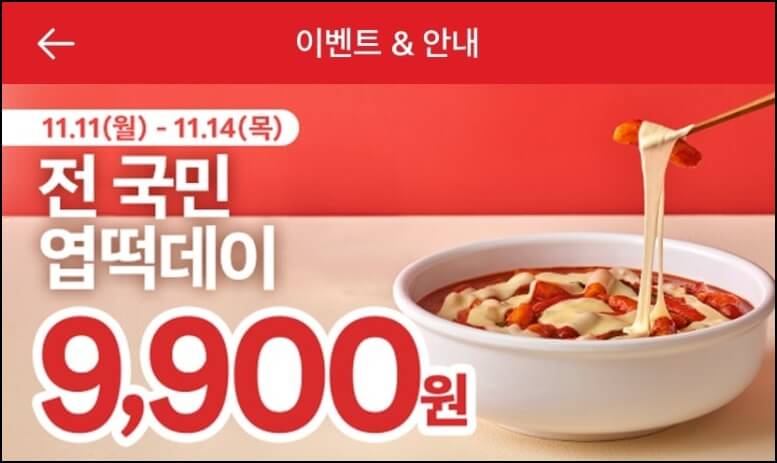 - 할인 대상 메뉴: 엽기떡볶이, 엽기오뎅, 반반 메뉴
