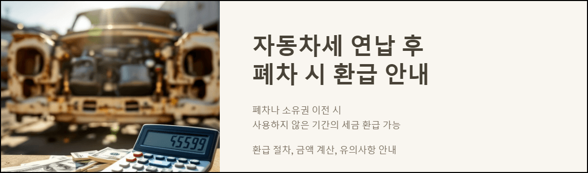 이번 글에서는 자동차세 연납 후 폐차 시 환급받는 절차, 금액 계산 방법, 그리고 유의사항을 구체적으로 안내하겠습니다.