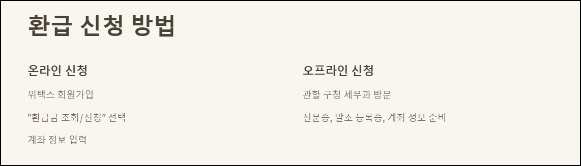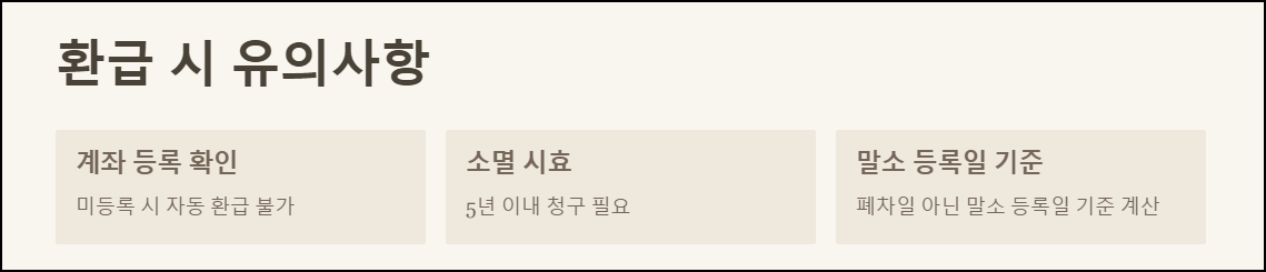 - 환급받을 계좌가 미리 등록되지 않으면 자동 환급이 진행되지 않을 수 있습니다.