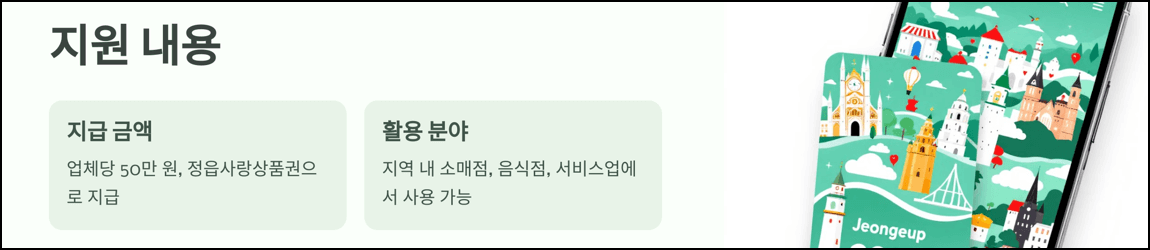 - 지급 형태: 정읍사랑상품권(모바일 또는 카드)로 지급