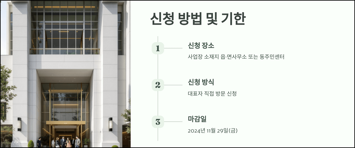 - 신청 장소: 사업장 소재지 읍·면사무소 또는 동주민센터
