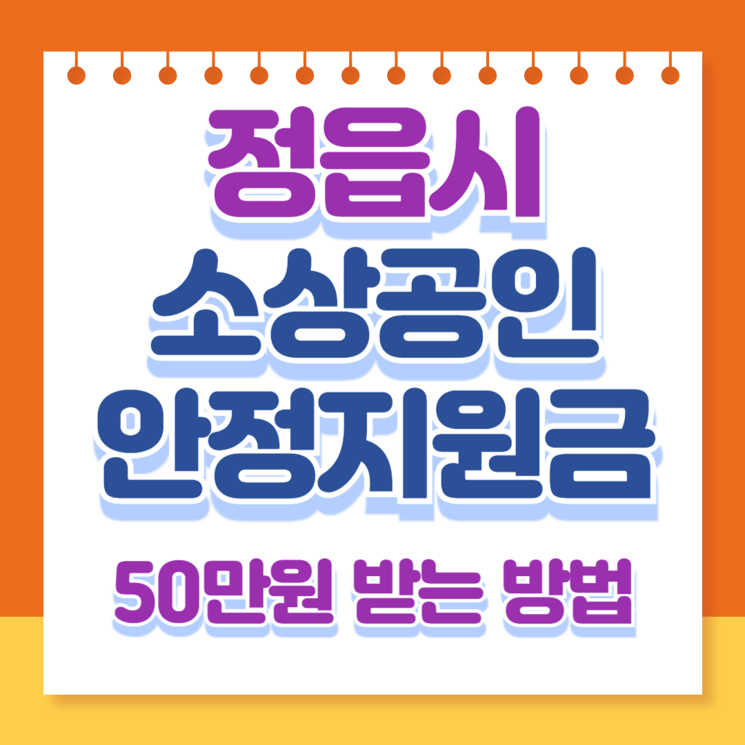 정읍시에 거주하는 소상공인이라면, 한 해를 마무리하며 큰 도움이 될 50만 원 소상공인 안정지원금을 놓치지 마세요! 정읍시에서 제공하는 이번 지원금은 사업장과 주민등록지가 정읍시에 있는 소상공인들을 대상으로 진행되며, 신청 마감일은 2024년 11월 29일(금)입니다.