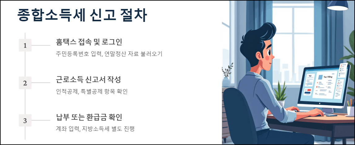 중도퇴사자가 종합소득세를 신고하는 과정은 크게 세 단계로 나뉩니다.