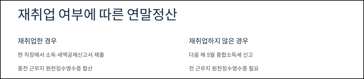중도퇴사 후 재취업 여부에 따른 연말정산 방법