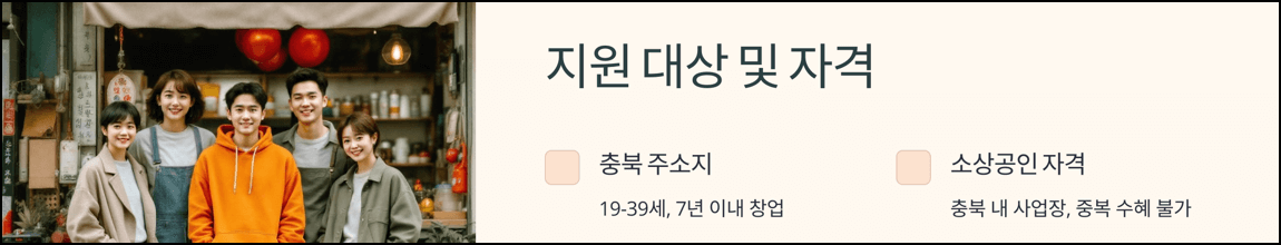 이 창업응원금은 일정 요건을 충족하는 청년 소상공인만 신청할 수 있습니다. 아래의 자격을 꼼꼼히 확인하세요.