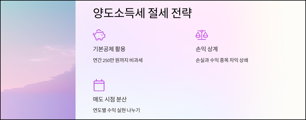 - 연간 250만 원까지 비과세 -매도 금액을 조정하여 과세 기준 이하로 관리