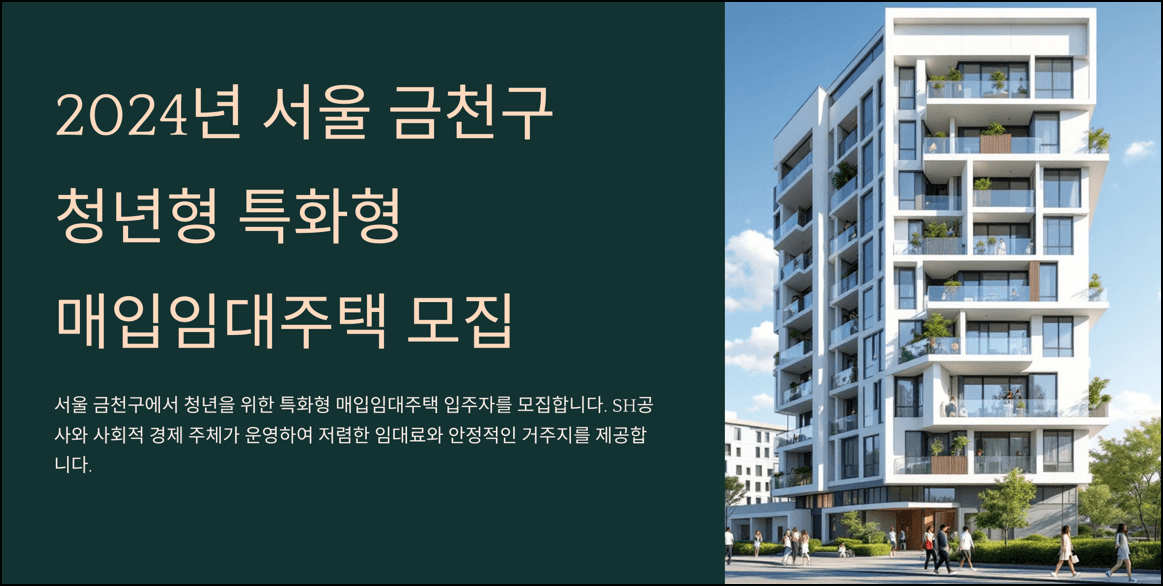 서울 금천구에서 청년을 대상으로 한 특화형 매입임대주택 입주자를 모집합니다. 금천구의 이 주택은 서울주택도시공사(SH)가 보유한 임대주택을 사회적 경제 주체가 운영하여 청년들에게 주거비 절감 및 안정적인 거주지를 제공합니다.