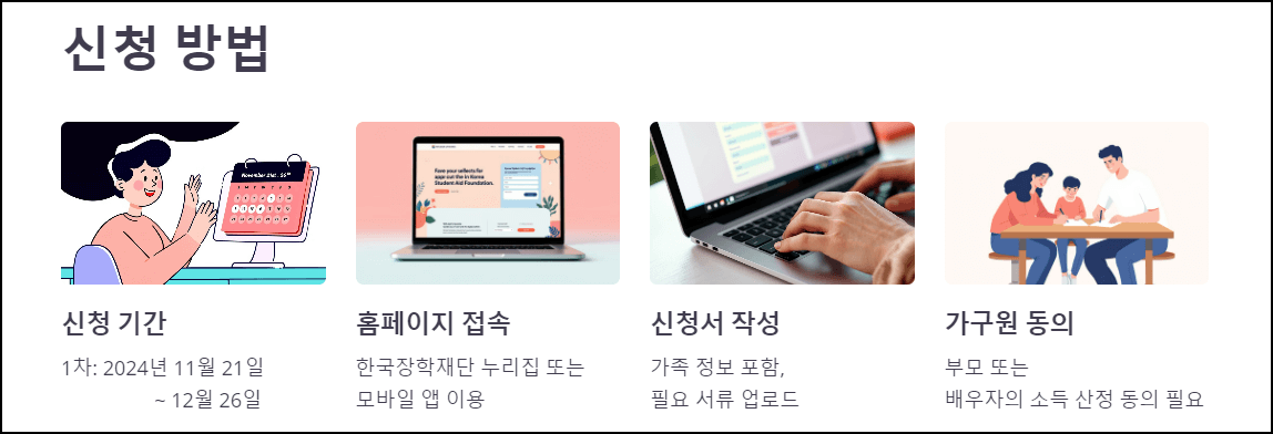 - 1차 신청: 2024년 11월 21일 ~ 12월 26일 오후 6시까지.