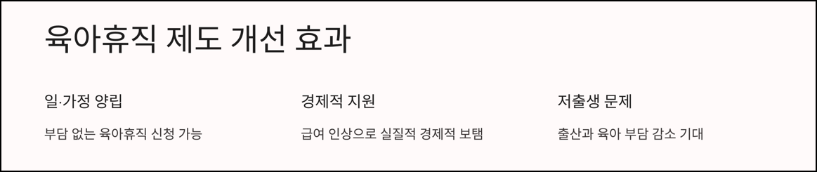 이번 육아휴직 제도 변경은 일과 가정의 양립을 위한 중요한 발판이 됩니다. 많은 부모들이 부담 없이 육아휴직을 신청할 수 있고, 중소기업 또한 대체 인력 지원금을 통해 부담을 덜 수 있습니다. 특히 급여 인상과 사후 지급 폐지는 육아휴직을 희망하는 부모에게 실질적인 경제적 보탬이 될 것입니다.