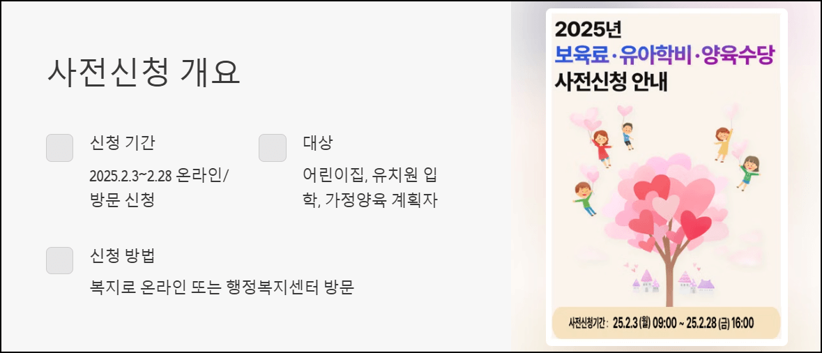 2025년 보육료·유아학비·양육수당 사전신청은 2월 3일~2월 28일 사이에 진행됩니다.