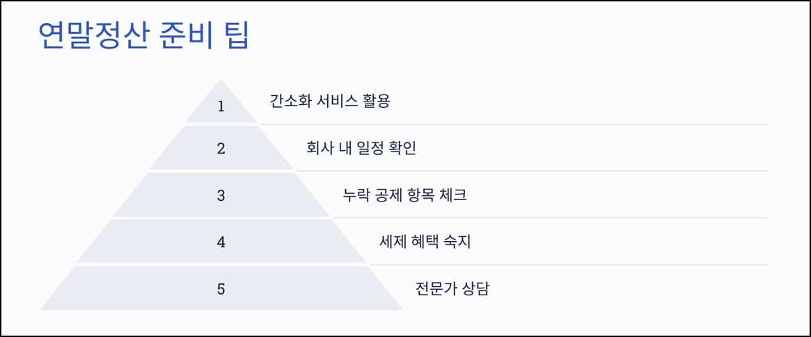 연말정산을 준비하면서 다음 사항을 체크하면 더욱 효율적으로 진행할 수 있습니다.
