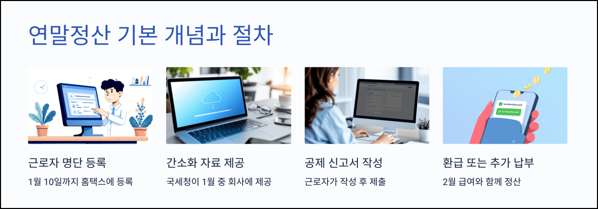 - 근로자 명단 등록: 회사는 1월 10일까지 근로자 명단을 홈택스에 등록해야 합니다.