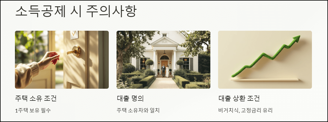 - 대출 명의자와 주택 소유자가 일치해야 공제가 가능합니다.
