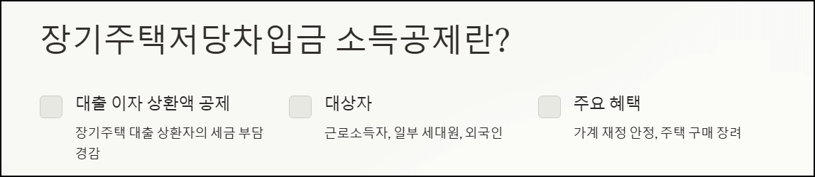 장기주택저당차입금 소득공제는 근로소득자가 주택 구매를 위해 대출받은 자금의 이자 상환액에 대해 소득에서 일정 금액을 공제받을 수 있도록 설계된 제도입니다.