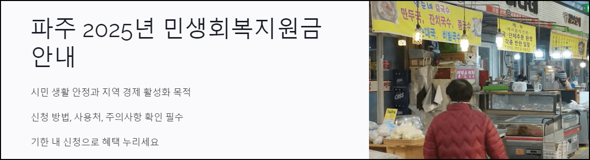 안녕하세요! 오늘은 파주 시민들을 위한 2025년 민생회복지원금에 대해 알아보겠습니다. 💰 이 지원금은 시민의 생활 안정과 지역 경제 활성화를 목적으로 지급되는 중요한 정책입니다.
